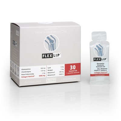 Wysoko przyswajalny kolagen rybi Naticol® wraz z glukozaminą, chondroityną, kwasem hialuronowym, cynkiem, manganem, witaminą C i D w postaci liposomalnej.